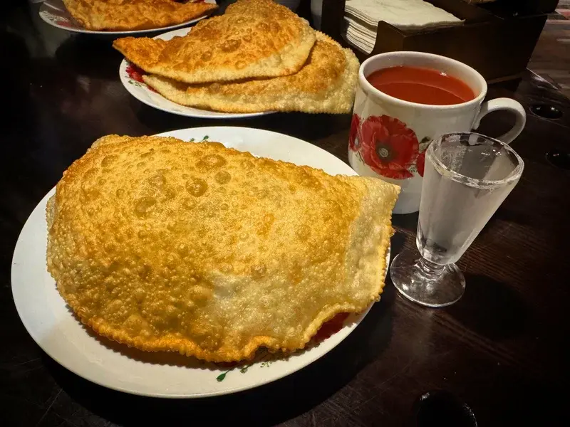 Не чебуреком единым! Начните вечер с: хрустящих куриных нагетсов и луковых колец, картофельных долек, креветок в кляре, сырных палочек с брусничным соусом, вяленого мяса и ассорти сала и многих других.